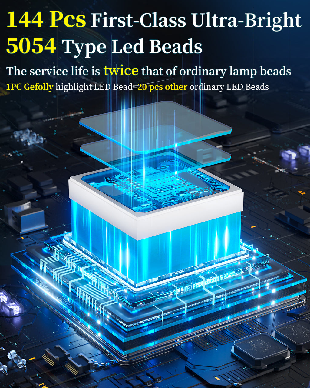 - [Ultra Bright 5054 Type Led Beads] - Designed with 144pcs first-class super bright 5054 type LED beads, 1 of our Gefolly beads is as bright as 20 ordinary beads. The lighting area is up to 5000 square feet, reducing lighting blind spots. Escort for the safety of you and your family. The first choice for night lighting.